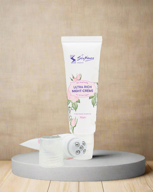 Skin Miracle Ultra Rich Night Cream | Natural Rose Oil for Brightening & Hydration (Massage Roller Balls)