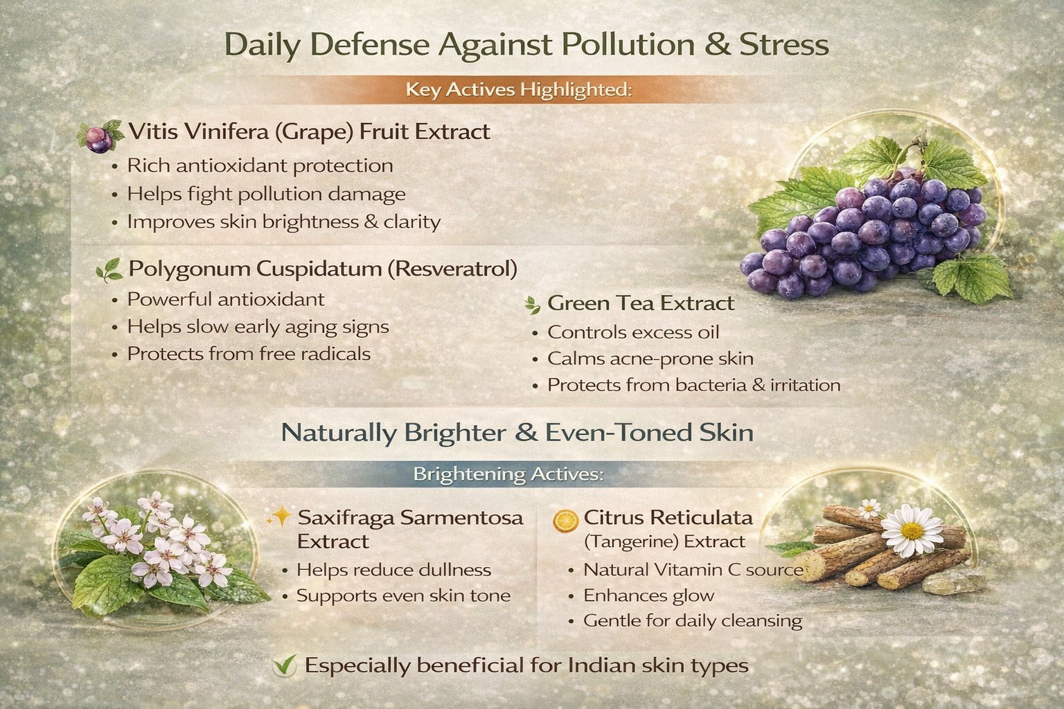 Yes, botanical extracts like grape, licorice, and Vitamin C help improve brightness and clarity.
